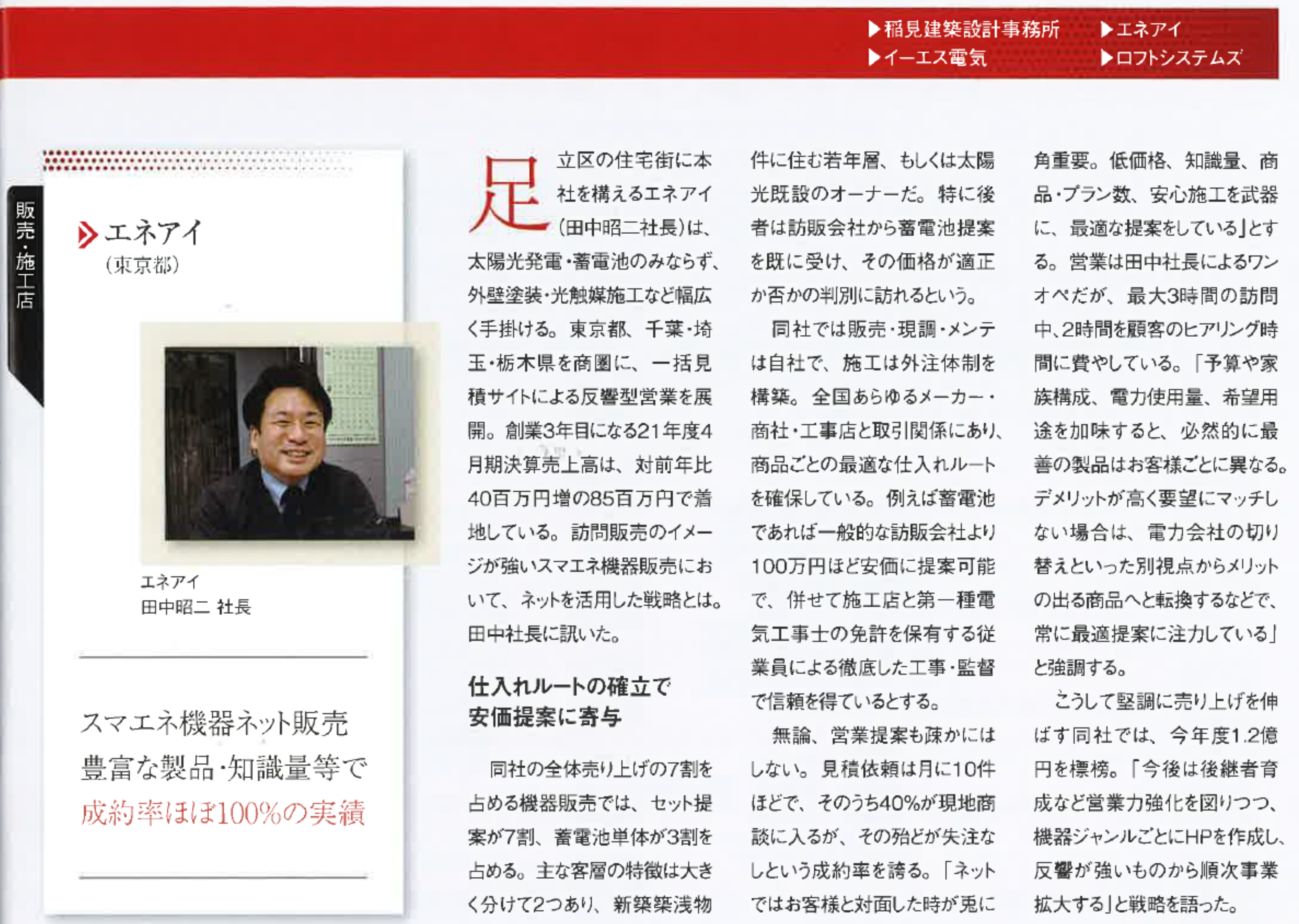 2019.11 太陽光発電専門誌『PVeye』2019年12月号に関東地方の主な販売・施工店として2年連続掲載されました。